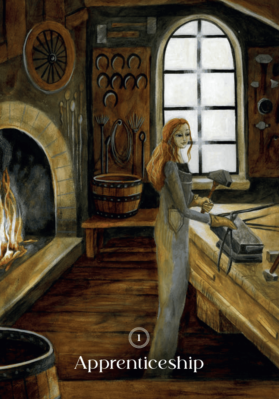 · Stedkort skildrer de magiske steder, som heltinden skal passere igennem – og hvor hun vil blive testet – under sin rejse.