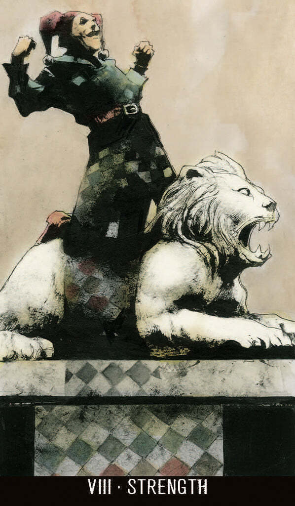 I dette nye Premium-sæt træder jokerens figur frem fra den sorte skygge af Corrado Rois dybe blæk for at ryste alle overbevisninger Hvert Arcanum viser et af jokerens 78 ansigter for at afsløre en side af hans rige og mangesidede personlighed.